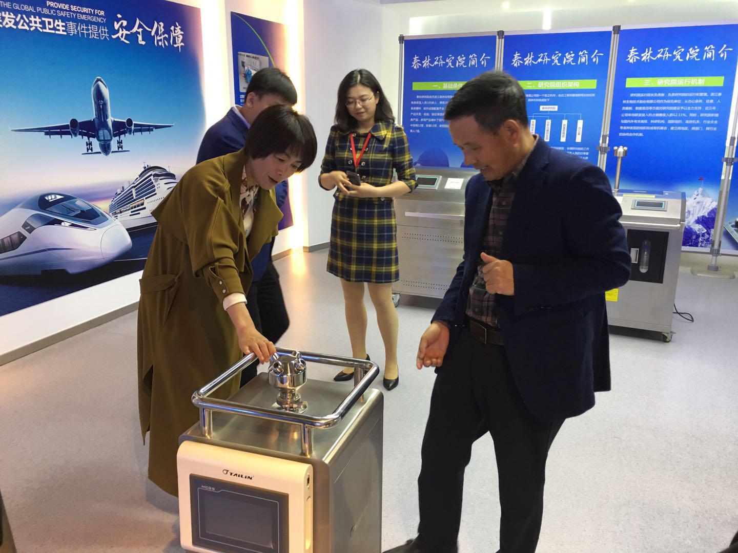 在泰林生物展廳,領(lǐng)導(dǎo)們饒有興趣的查看了泰林自主研發(fā)的系列產(chǎn)品,運(yùn)營(yíng)總監(jiān)方小燕向各位領(lǐng)導(dǎo)介紹了泰林生物的發(fā)展歷史、業(yè)務(wù)領(lǐng)域、科研成就以及公司產(chǎn)品的主要功能及應(yīng)用情況。